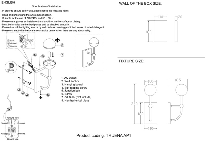 Бра Crystal Lux TRUENA AP1 NICKEL